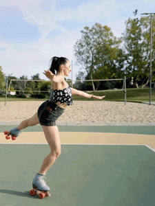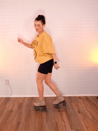 Aka. The Tik Tok Walk. Oh yes! This was the move that got a lot of people into roller skating in 2020 and for that, I am forever grateful. While this is a super cool dance move, it is also a very useful skill. The strut walk helps us learn and practice the transferring of weight from one foot to the other.